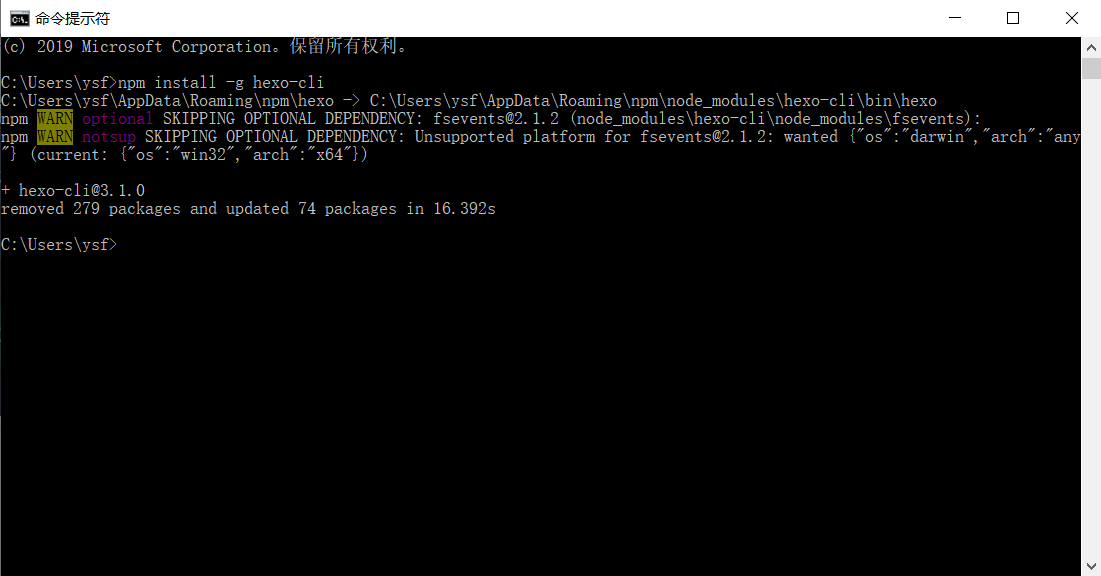 等待安装hexo完成